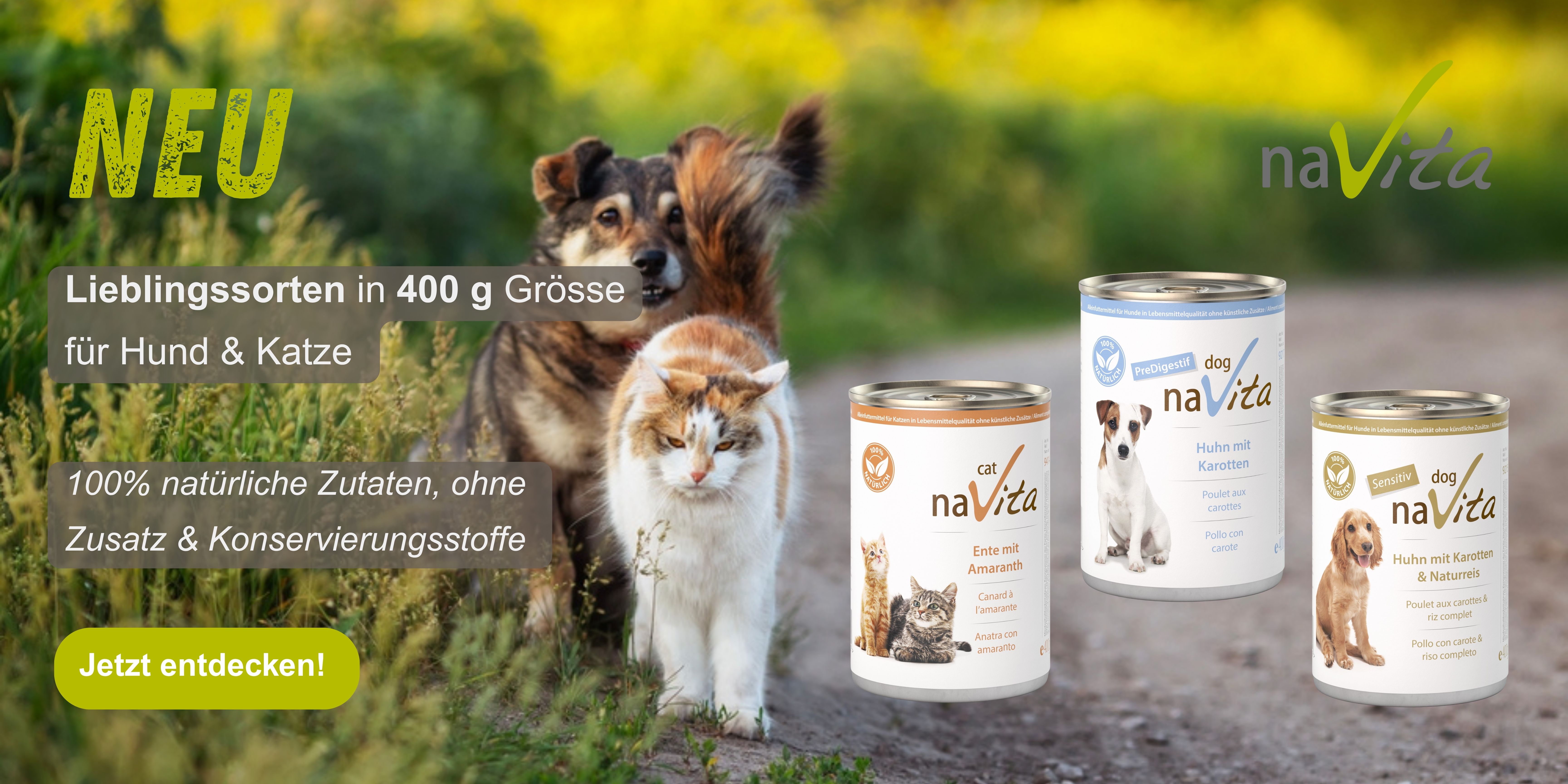 Die bewährten, hochwertigen Rezepturen von naVita sind unverändert und für alle Rassen geeignet.